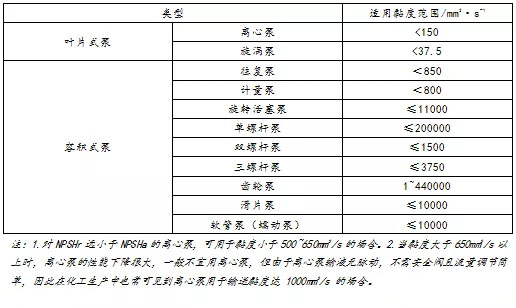 表2 不同類型泵的適用黏度范圍