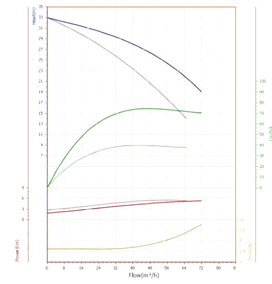輸送含固體顆粒的液體時(shí),懸浮在液體中的固體顆粒既不能像液體那樣吸收、儲(chǔ)存或傳遞能量(公眾號(hào):泵管家),又不能將其動(dòng)能傳遞給液體。固體顆粒的存在使泵揚(yáng)程、效率均較輸送清水時(shí)低。