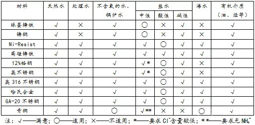 輸送腐蝕性介質(zhì)的泵應(yīng)選用耐腐蝕泵,其結(jié)構(gòu)特點(diǎn)見(jiàn)表4,表5和表6為常用泵材料的性能。