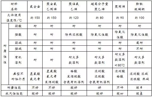 表6 非金屬泵常用材料性能