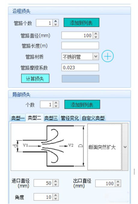可利用現(xiàn)有軟件, 計(jì)算出管路沿程損失和管路局部損失, 如義維開(kāi)發(fā)的的選型軟件系統(tǒng), 以方便計(jì)算。