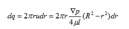 圖(b)所示拋物體體積,是液體單位時(shí)間內(nèi)流過(guò)通流截面的體積即流量。為計(jì)算其體積,可在半徑為r處取一層厚度為dr的微小圓環(huán)面積,通過(guò)此環(huán)形面積的流量為: