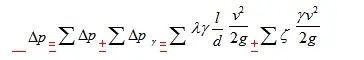 管路系統(tǒng)的總壓力損失等于所有沿程壓力損失和所有局部壓力損失之和,即: