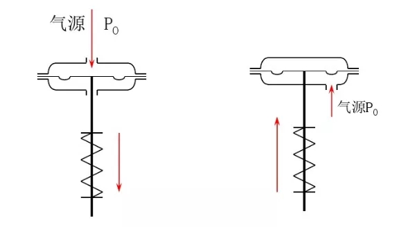 氣動薄膜式執(zhí)行機構(gòu)有正作用和反作用。