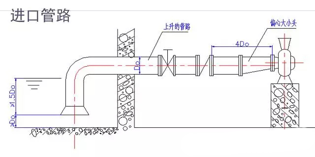 B、要便于排氣,如采用偏心大小頭、吸入管路稍前傾等措施。