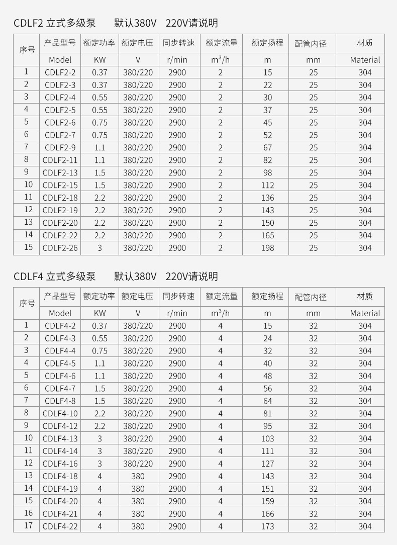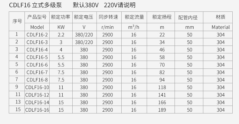 CDLF多級離心泵單泵智能變頻性能參數(shù):