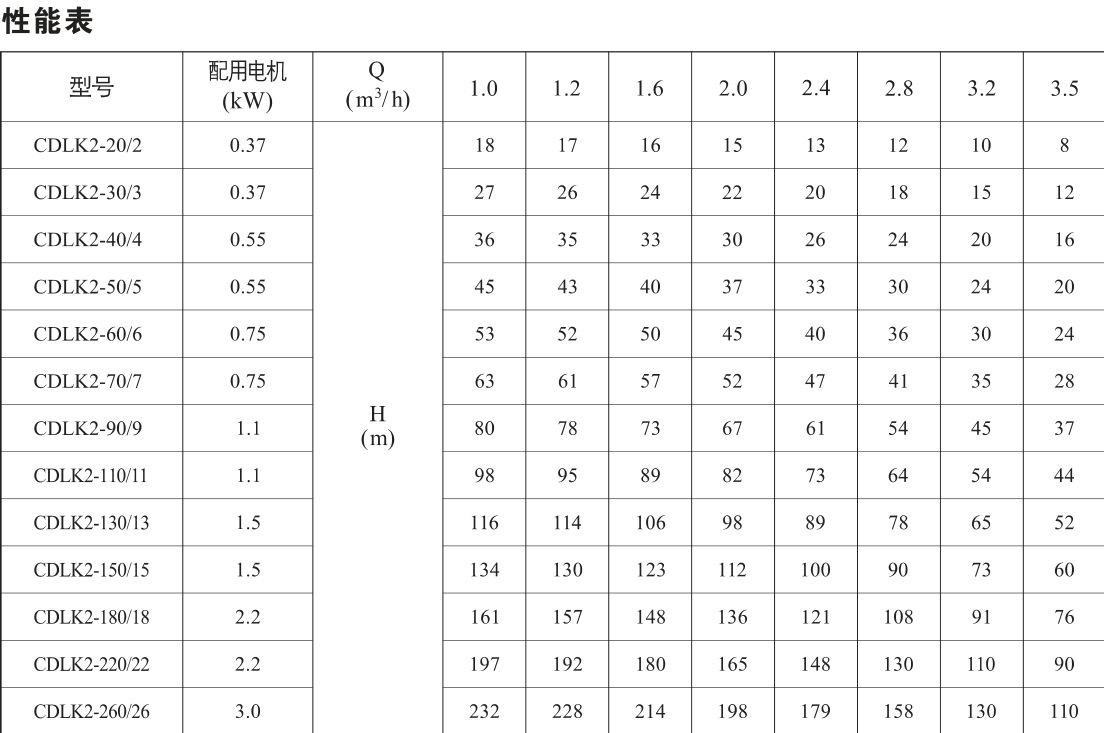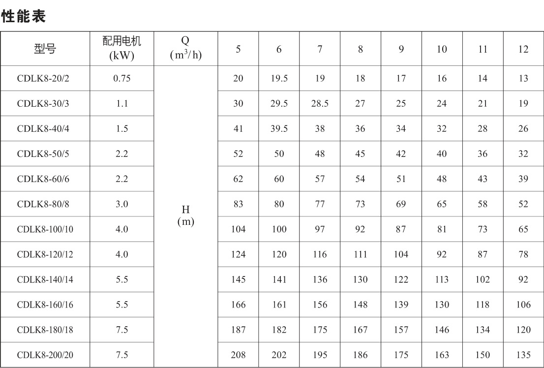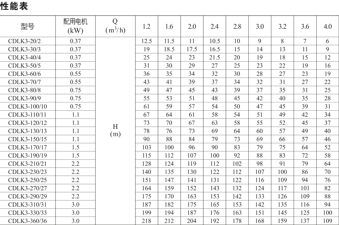 CDLK浸入式多級離心泵性能參數(shù):