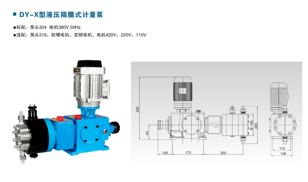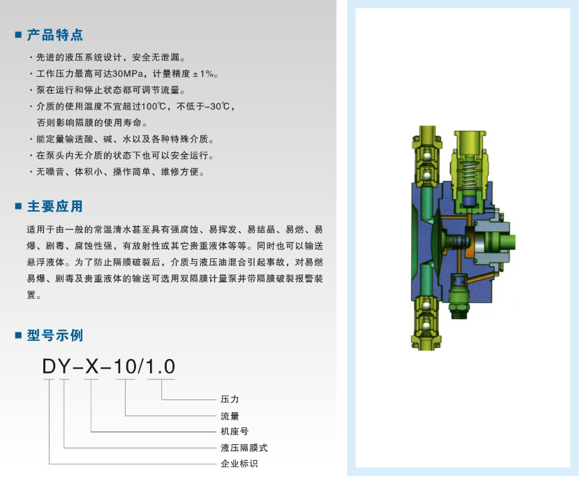 DY-X液壓隔膜式計量泵性能參數: