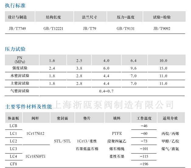 DZ40Y低溫閘閥性能參數(shù):