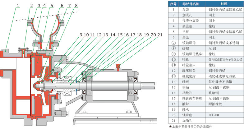 1、泵體:左右兩邊連接部分內(nèi)埋鋼質(zhì)法蘭圈各一只模壓塑料合成金制成。
