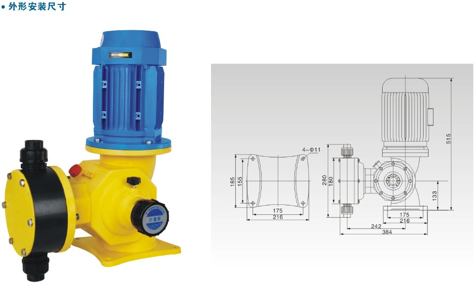 | 計(jì)量閥: 聚氯乙烯、SUS304、SUS316、聚四氟乙烯 | 電機(jī): 二相、三相標(biāo)準(zhǔn)電機(jī)或防爆電機(jī) |