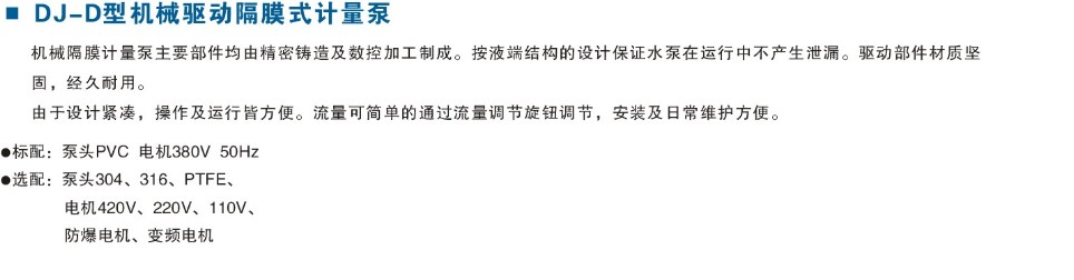 GB(DJ-D)系列機(jī)械隔膜式計(jì)量泵性能參數(shù):