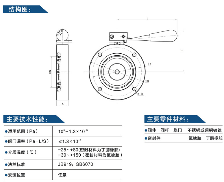 GI型手動(dòng)高真空蝶閥性能參數(shù):