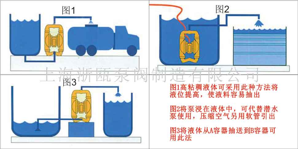 臨時(shí)倒罐、裝卸車和油品采樣,煉油生產(chǎn)調(diào)度過(guò)程中,油品經(jīng)常要臨時(shí)倒罐、裝車和對(duì)油罐中油品采樣檢驗(yàn)?;蛘邽榱瞬恢劣谖廴菊5墓芫€時(shí),用隔膜泵接臨時(shí)管線可以迅速方便地完成此項(xiàng)任務(wù)。