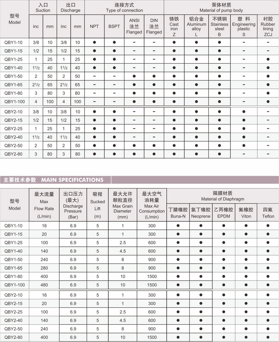 氣動隔膜泵型號:QBY-10、QBY-15、QBY-25、QBY-40、QBY-50、QBY-65、QBY-80、QBY-100、QBY-125