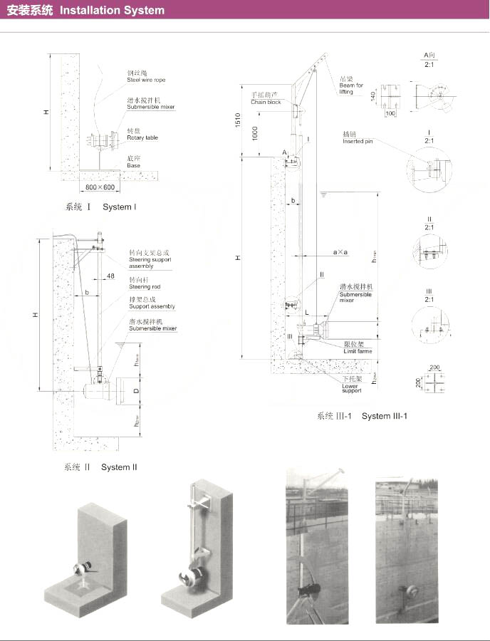 1、潛水?dāng)嚢铏C(jī)的專用安裝系統(tǒng),可在無需排出池中污水的情況下,快速安裝和拆卸潛水?dāng)嚢铏C(jī);