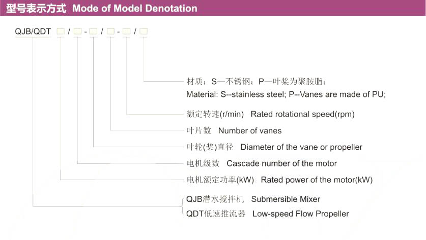 QJB型潛水?dāng)嚢铏C(jī)作為水處理工藝中的關(guān)鍵設(shè)備之一,在水處理工藝流程中,可實(shí)現(xiàn)生化過程中固液二相流和固 液氣三相流的均質(zhì)、流動(dòng)的工藝要求。它由潛水電機(jī)、葉輪和安裝系統(tǒng)等組成。潛水?dāng)嚢铏C(jī)為直聯(lián)式結(jié)構(gòu)。它與傳統(tǒng) 的大功率電機(jī)通過減速機(jī)降速相比,具有結(jié)構(gòu)緊湊、能耗低、便于維護(hù)保養(yǎng)等優(yōu)點(diǎn)。葉輪經(jīng)過精鑄或沖壓成型,精度 高、推力大、流線性造型簡(jiǎn)潔美觀。