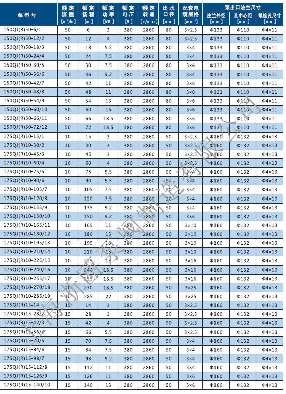QJ不銹鋼深井泵性能參數(shù):