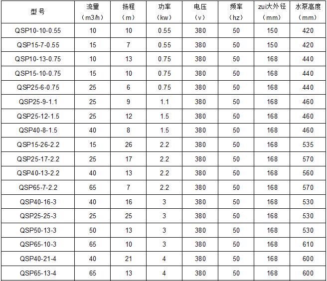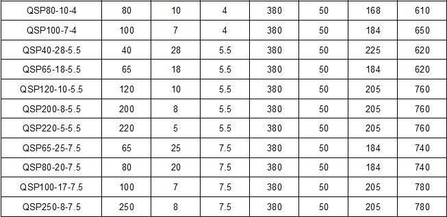 QSP不銹鋼潛水噴泉泵性能參數(shù):