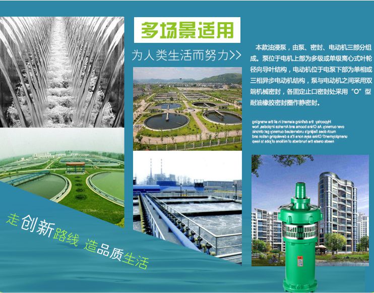 QY型充油式潛水電泵(簡稱潛水泵)是水泵和三相異步電動機(jī)合成一體的電力排灌設(shè)備。具有可靠的防水密封性能,體積小、重量輕、不需泵房,不需灌引水,使用維護(hù)和管理均為方便。
