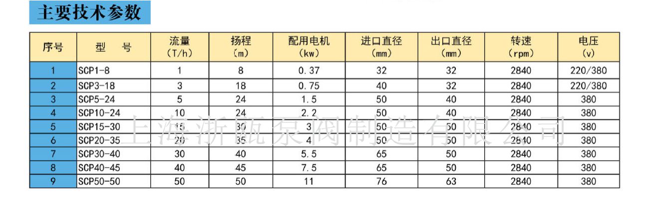SCP衛(wèi)生級(jí)離心泵性能參數(shù):