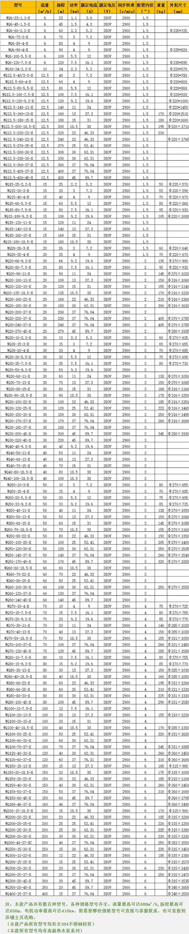 WQ-X高揚(yáng)程潛水排污泵性能參數(shù):