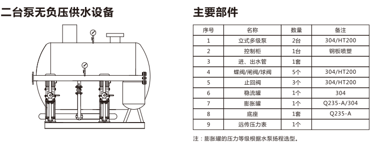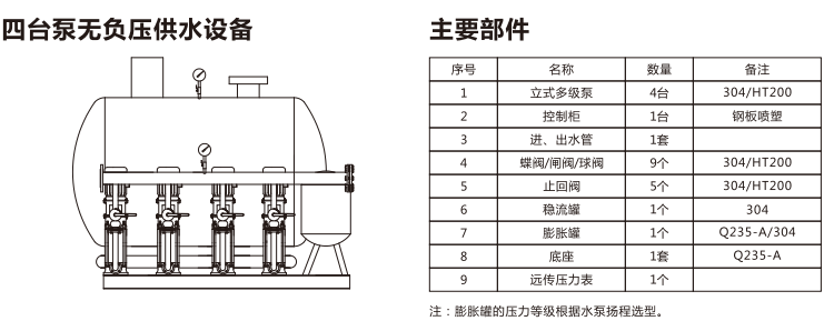 選擇一套自動(dòng)給水設(shè)備的基本依據(jù)是設(shè)計(jì)的供水流量和供水壓力(水的揚(yáng)程),另外還需考慮到用途的流量變化類型。