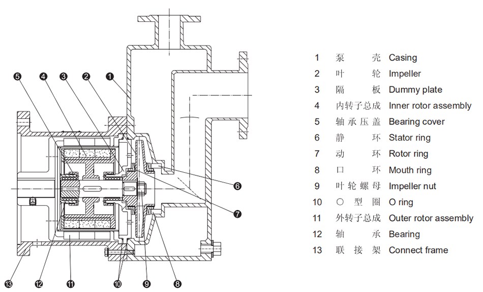 ZCQ 型自吸式磁力泵結(jié)構(gòu)緊湊,外形美觀,體積小,噪音低,運行可靠,使用維修方便,可廣泛用于石油、化工、制藥、電鍍、印染、食品、科研等單位抽送酸、堿、油 類及稀有貴重液體、毒液、揮發(fā)性液體,以及循環(huán)水設(shè)備配套,特別是易漏、易燃、易爆液體的抽送。因此,它是有廣泛的用途,我們真誠地向用戶推薦這種產(chǎn)品。