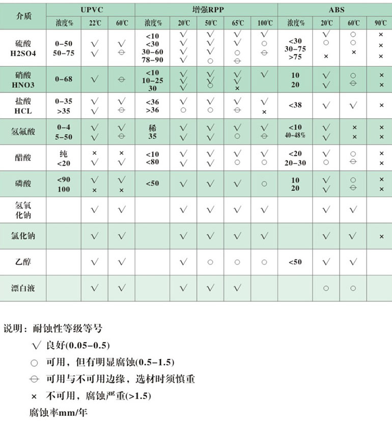 塑料耐腐蝕表: