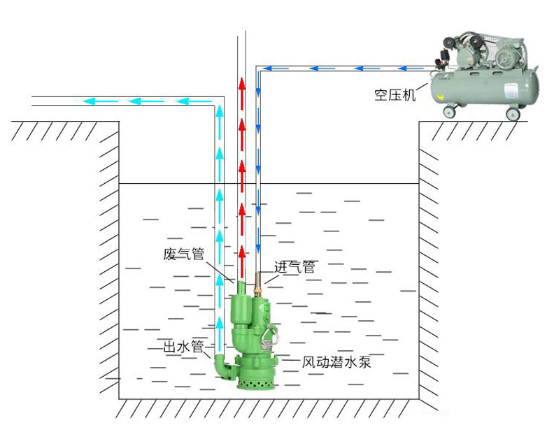 風(fēng)動潛水泵因本身動力源于空氣,相對其他的電動潛水泵而言非常的安全。所以杜絕明火和電力的工廠就比較適合使用風(fēng)動潛水泵。比如煤礦井下污水處理、沼氣池的污水排放、礦道挖掘等多種環(huán)境都很適合風(fēng)動潛水泵的使用。