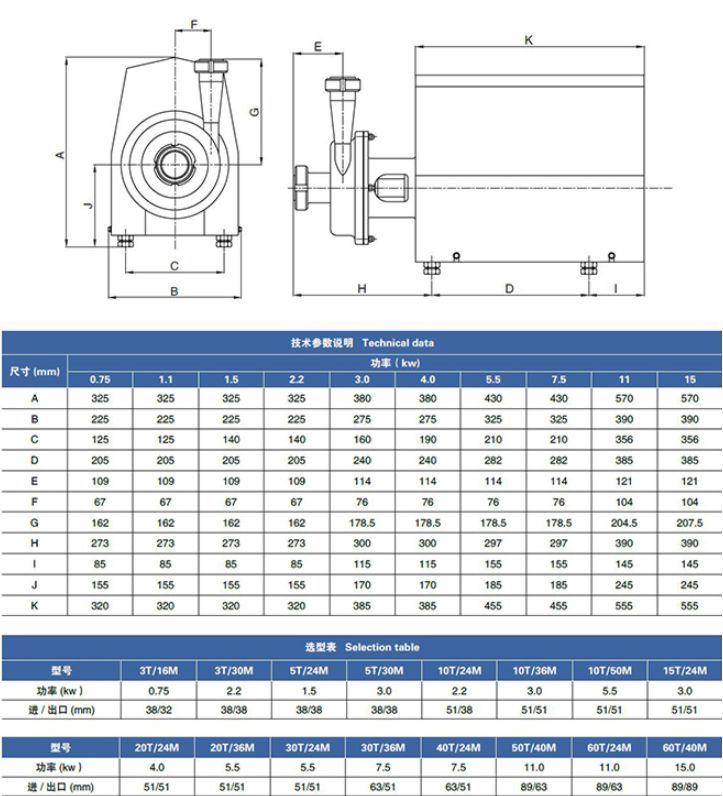 材質(zhì):SUS304SUs316L(在材料的選用上泵體、泵蓋、葉輪等凡與物料接觸之零件由SUS316L或SUSl304不銹鋼制造)